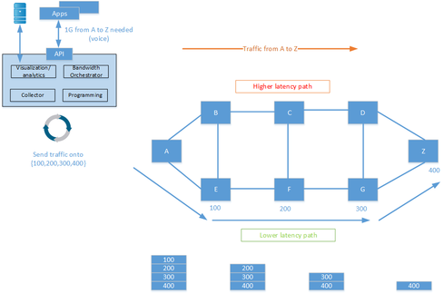 One of the main applications for SR is to enable some kind of application controller that can steer traffic over different paths, depending on different requirements and the current state of the network. Some might relate to this as software-defined networking (SDN). It is then possible to program the network to send voice over a lower latency path and send bulk data over a higher latency path. Doing this today requires MPLS-TE, as well as keeping state in many devices. With SR, there is no need to keep state in intermediary devices.
