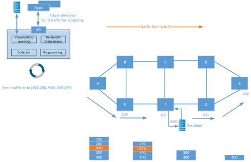 SR can also help protect against distributed denial of service (DDoS) attacks. When an attack is detected, traffic can be redirected to a scrubbing device which cleans the traffic and injects it into the network again.